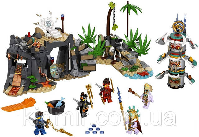 Розігруйте неймовірні битви разом з конструктором з серії Lego Ninjago Село Зберігачів 71747. Герої повинні не потрапити в смертельну пастку, втекти з в'язниці і перемогти лиходіїв. Шлях до лігва вождя починається прямо з моря. На блакитному ділянці води розташувався червоний краб. Дві пастки чекають сміливців. Якщо наступити на секретну панель, гілка пальми відкриє замаскованого лиходія з гарматою, який відразу почне стріляти. Наступивши на листя, герой ризикує опинитися підвішеним за ногу вниз головою над гострими кігтями. Бийтеся з страхітливим вождем Мамматусом і заволодійте амулетом бурі.